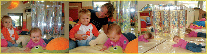 Het is tijd om te snoezelen! In snoezelbox, een grote snoezelbox afgeschermd met zachte bekleding aan de binnenkant, kleurenprojector, een bubbelunit, spiegelwanden, sterrenhemel en een watermatras, kan de baby en leidster heerlijk tot rust komen in een beschermde omgeving. Vooral voor de gestreste baby’s, de huil baby’s en baby’s met darmkrampjes, lijkt de snoezelbox de ideale oplossing.